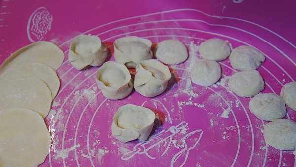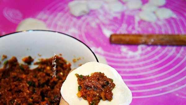 包餃子:包餃子,餳好的面團揉成長條,揪成大小均等的劑子,搟成薄皮,包上餡,對折,從一頭捏起來就OK瞭。