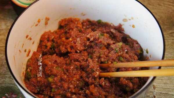 調豬肉餡:一是肉餡中加入適量的鹽,充分攪拌均勻,先加鹽可以起到給豬肉殺菌的作用。二是加入蔥薑末、半勺白糖,半勺白胡椒粉、半勺五香粉、兩勺生抽、一勺蠔油沿一個方向充分攪拌上勁。三是分多次加入老湯,繼續沿一個方向攪拌上勁,至老湯完全融入肉餡裡,讓肉餡吸滿湯汁,最後炸熟豆油澆在肉餡上,繼續沿一個方向攪拌上勁,鎖住水分。