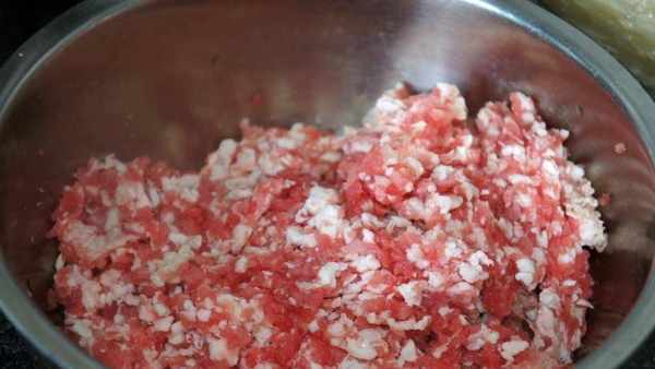豬肉洗凈,送入料理機打成肉餡或者剁成肉餡。