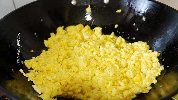 茴香鵝蛋餡做法:鵝蛋打散,兌少許水攪拌均勻,炒鍋加入適量的油,可以多加一點油,拌餡時不另加油瞭,油開後倒入蛋液,邊倒邊攪拌,盡量攪拌的碎一些,晾涼備用。