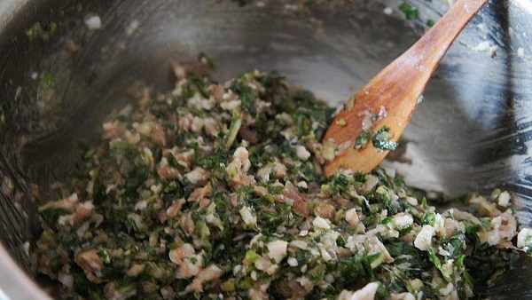 加入婆婆丁末攪拌均勻就可以包餃子瞭。