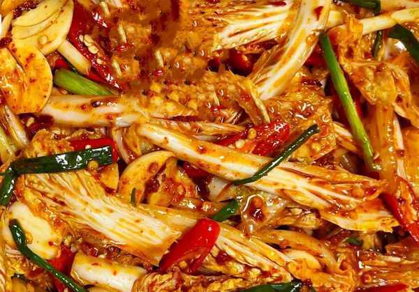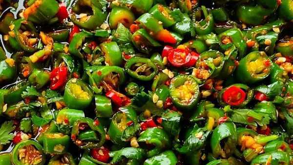 【食材】線椒,小米辣,香菜,蒜,生抽,蠔油,白醋,白糖,香油