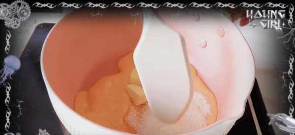 流心餡材料:咸蛋黃60克,牛奶50克,糖10克,奶粉10克,黃油15克。烤熟的咸蛋黃醬用牛奶直接給打成泥,奶粉、糖還有黃油一起倒入小奶鍋裡翻炒