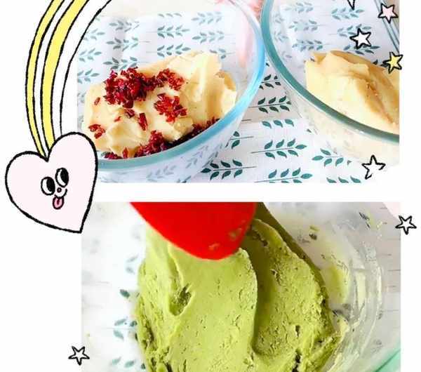 平均地給他分成三份,一份原味,一份加入蔓越莓果幹碎給它揉均勻,另外一份將用抹茶粉給他混合均勻就可以啦。