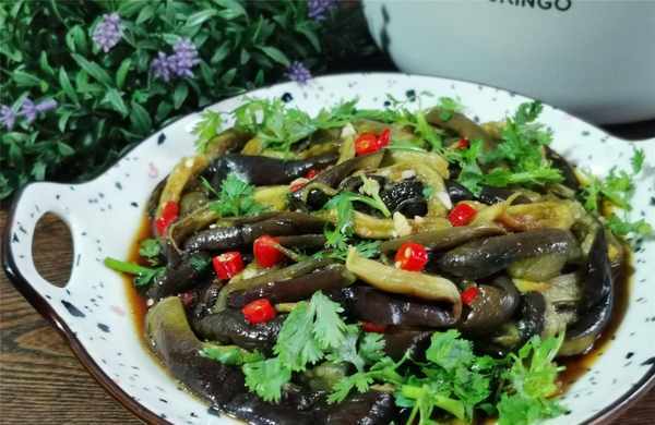 【蒜拌茄子】所需材料:茄子1斤、香菜1棵、小米辣2-3個、香油半湯匙、大蒜3瓣、醬油2湯匙、