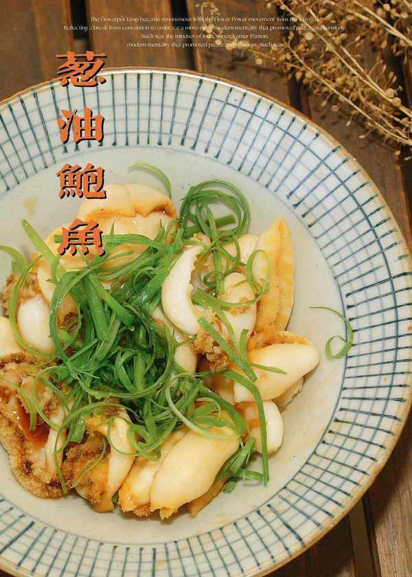 6. 熱鍋涼油,下蔥段,小火煸炒出蔥香味,將蔥油淋在鮑魚上,開始吃。