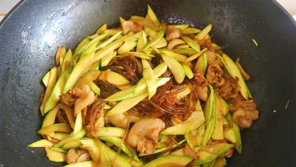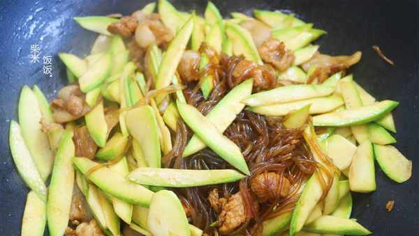 1,粉條不需要泡得很軟,這樣可以先炒粉條,加入老抽也可以使粉條更好上色。後面再倒入西葫蘆炒,不會出現西葫蘆還沒炒熟而粉條炒得太黏的情況。