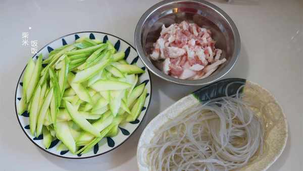 【食材】西葫蘆、粉條、五花肉、蔥、薑、蒜、鹽、老抽、生抽、香醋