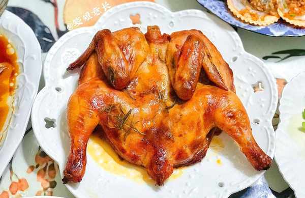 這隻烤雞是我在買菜平臺買的半成品,已經醃制入味兒瞭,500克的奧爾良美雞,烤箱預熱後180度烤20分鐘,烤到滋滋冒油時再將烤箱升溫至230度烤8分鐘,就能吃上脆皮兒的香美奧爾良烤雞瞭!傢裡來客人時直接上一整隻現烤的,比燉雞肉更有排面兒。