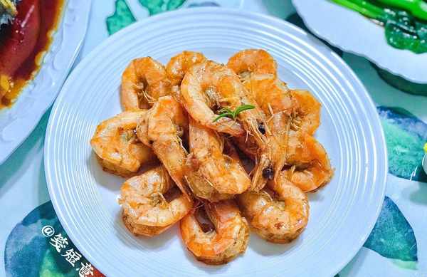 3、大蝦炒至變色發紅開始調味兒,套用一下《舌尖上的我們》裡那句經典臺詞:“上好的食材往往需要最樸素的烹飪方式”,簡單放點兒鹽調味後翻炒均勻即可,煸炒至大蝦外皮酥脆即可出鍋。
