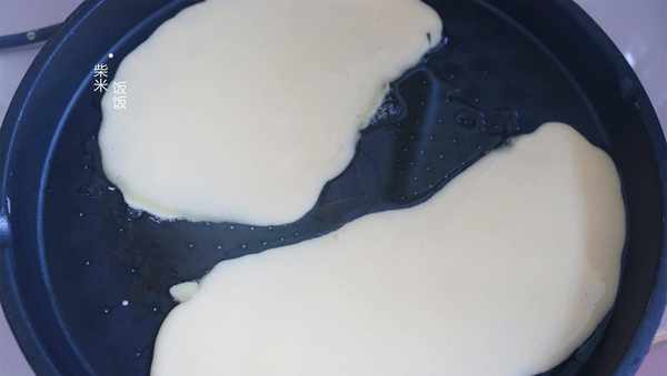 2,電餅鐺或者平底鍋刷油燒熱,舀入面糊,攤成小餅。