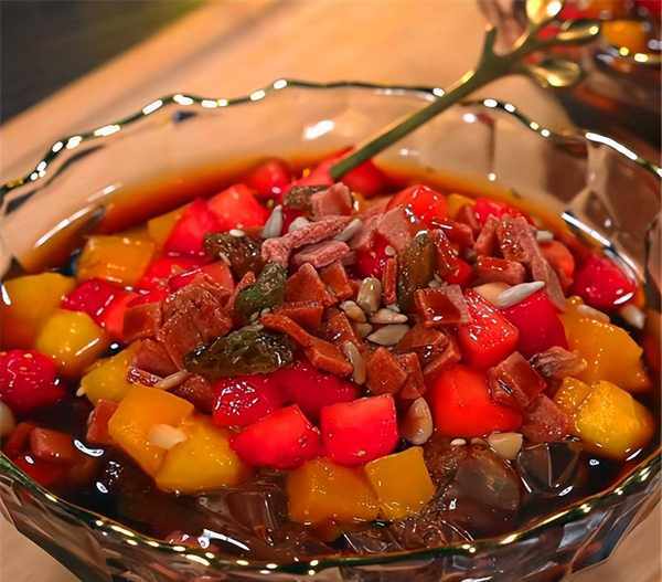 這樣好吃的冰粉就完成瞭,攪拌均勻就可以食用瞭,是不是很簡單,有喜歡的小夥伴就試試吧,盛夏季節記得多給傢人做著吃,能緩解“苦夏”所帶來的不適感。