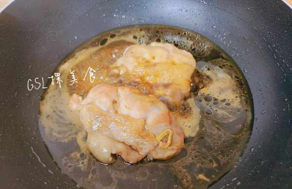 第5步,雞腿醃制好放進油鍋中,先煎制帶雞皮的一面,煎至表面金黃,翻面接著煎,煎至兩面金黃以後,把準備好的照燒汁倒進去,蓋蓋兒燜煮,最後大火收汁即可,可以多留點湯汁,拌米飯超好吃。