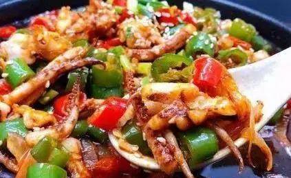 用料用料:魷魚1個;鍋巴適量;青、紅椒各一個;花椒、蔥、薑、蒜、料酒少許