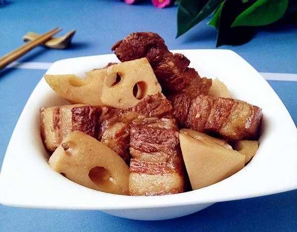 材料:五花肉、蓮藕、鹽、紅糖、醬油、蔥薑、大料