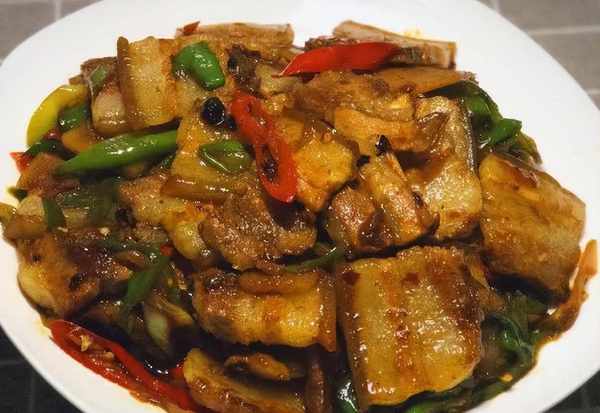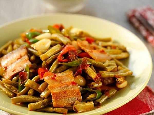 食材:五花肉,酸豆角 ,小米椒兩個,尖椒一個,蔥薑蒜適量,料酒,醬油,白糖,雞精,鹽和油少許。