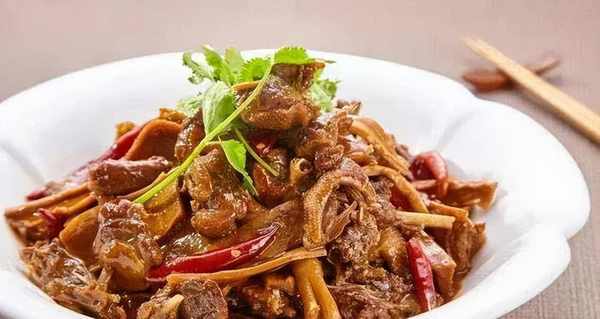 3、鐵鍋中倒油加熱至七成,下鴨塊翻炒,不停在鍋中炒鴨塊,逼出鴨肉中的水分,看到鴨皮變緊,鴨塊相對縮小,把炒鴨塊轉移到高壓鍋裡,鐵鍋不必洗。