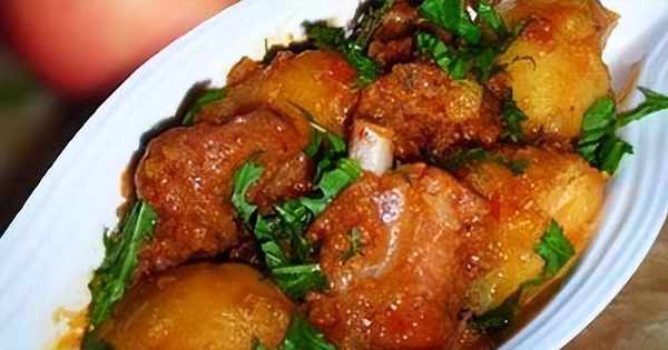 食材:中型土豆1個、排骨250g、蔥2根、薑1塊、蒜2瓣。