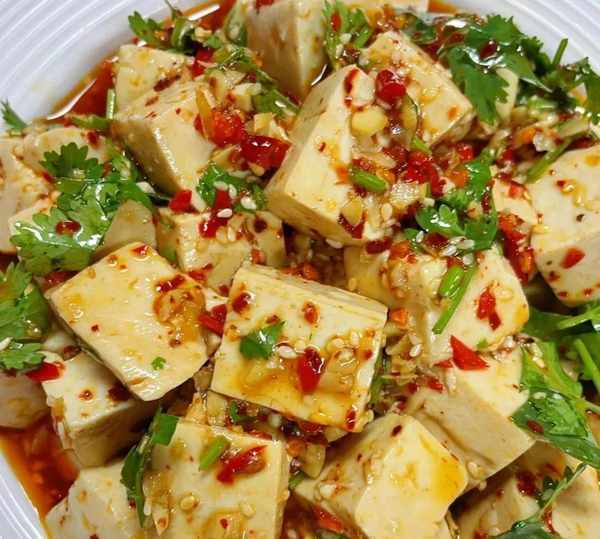 3.淋到豆腐上,放點小蔥香菜攪拌均勻即可(可以放點黃瓜)