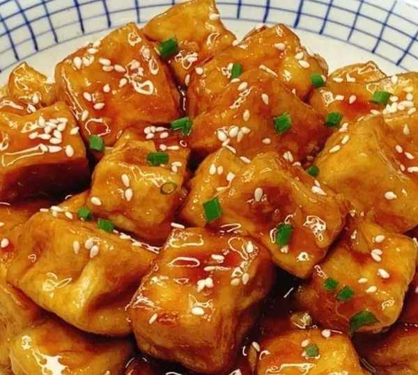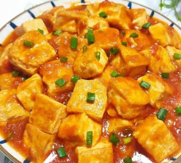 4.炒熟後放入豆腐,再倒入調好的料汁,湯汁熬制粘稠,就可以出鍋瞭