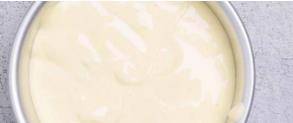 最後將面糊前部倒入蛋白霜中,順時針翻拌均勻,面糊的狀態是細膩的,沒有非常大的泡泡就可以倒入模具中瞭,從高處往下摔幾下,震出泡沫。