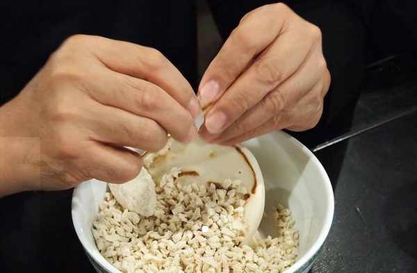 但是,掰饃卻是一個漫長的過程,如果想要掰得像當地人一樣,至少需要一個小時。很多外地人掰著掰著就沒瞭耐心,饃越掰越大,最後做出來的羊肉泡饃,饃外面已經泡爛,裡面還沒有泡好也沒有入味,吃進嘴裡,饃還是僵硬的也沒有吸收羊湯的鮮味,很難讓人愛上。這也是羊肉泡饃的尷尬之處,如果想要吃到好吃的羊肉泡饃,一定要非常有耐心。