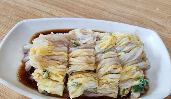 腸粉在廣東是最為常見的一種早餐,它分為咸口和甜口,咸口腸粉的餡料會加豬肉、牛肉等肉類食材,甜口的腸粉裡隻有蔬菜配上炒香的芝麻。在廣東,每傢腸粉店裡都坐滿瞭人,廣東人即使天天早上吃腸粉也不會覺得膩。