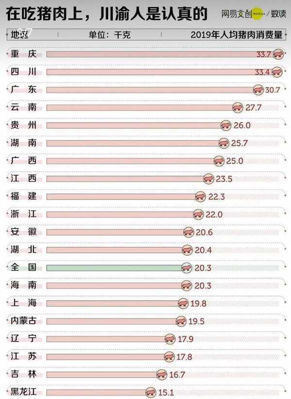 2023年人均吃豬38.7公斤,以微弱的優勢戰勝四川,成為吃豬霸主。