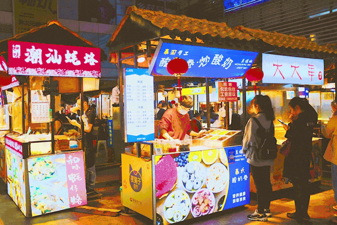 這裡跟以前的老夜市相比,雖然少瞭些煙火氣和生活氣。但是這裡的裝修清新又有格調幹凈整潔,食材衛生方面也有瞭保障。(早.中.晚,全天候營業)