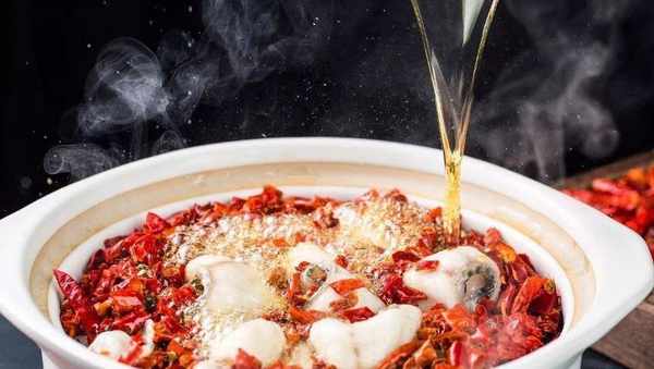 沸騰魚是四川當地較為出名的菜系,烹飪時使用熱油浸泡致魚肉熟,使得魚肉鮮美異常,口感鮮美無比。
