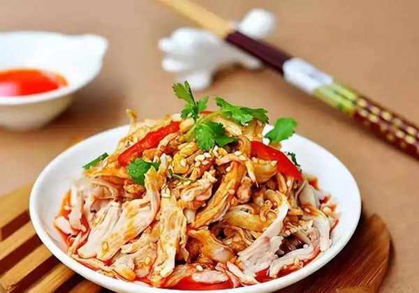 棒棒雞絲又名怪味雞絲,此菜色澤棕紅、肉質細美,同時兼具麻辣酸香鮮的特點。自古以來,棒棒雞絲就是樂山地區最為出名的風味小吃,後來,隨著時代的發展,這道菜逐漸被傳入成都,並深受當地老百姓的熱情青睞。