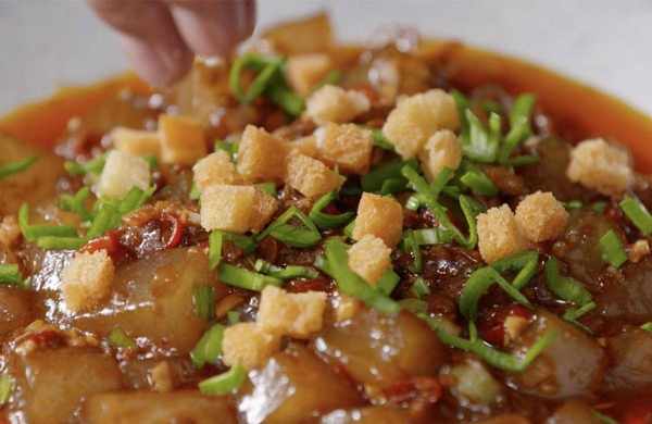 滾燙的熱油淋在蒸煮好的鯉魚上面,激發出魚肉本身的香味,滋味鮮美可口,是不可多得的一道豫菜。