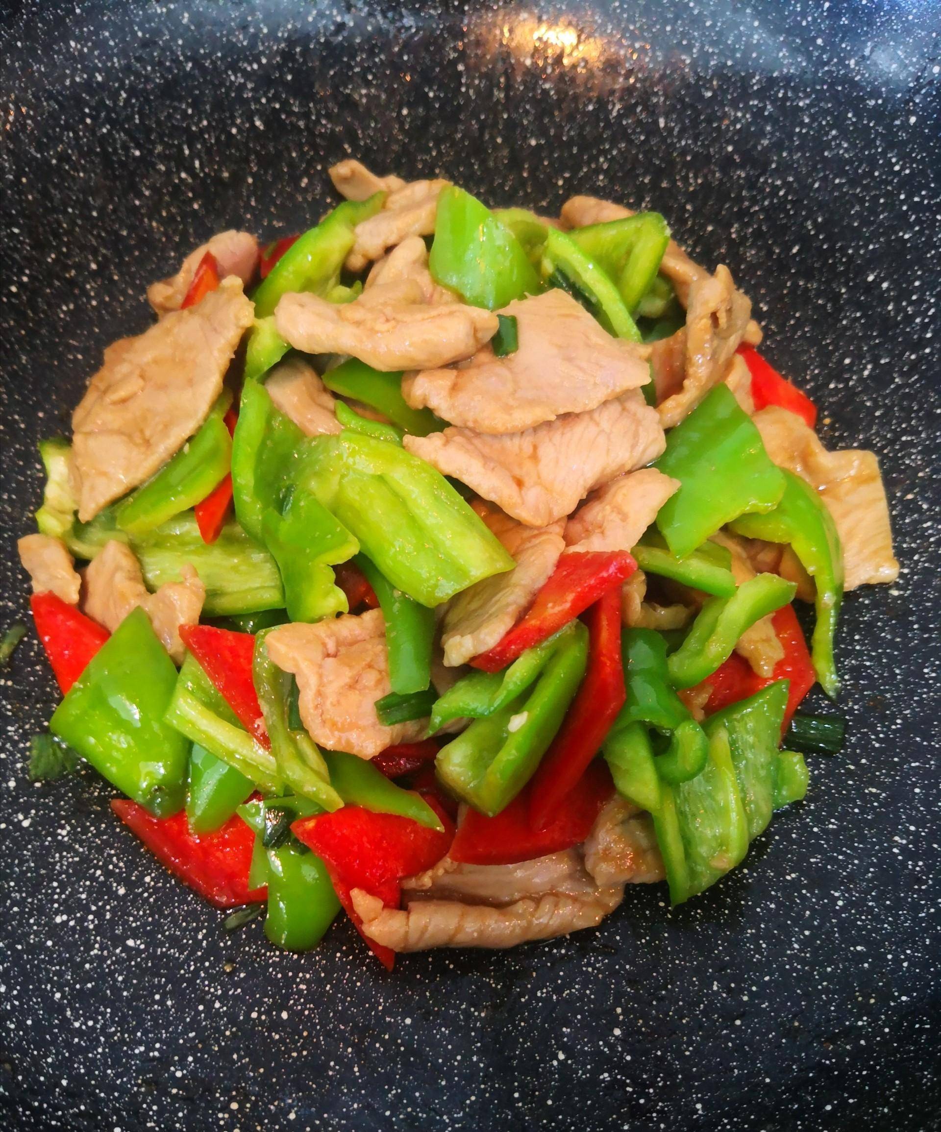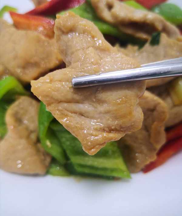 盡管用的是全瘦肉,但一點都不老不柴,特別滑美好吃,搭配青椒、胡蘿卜,配色、增營養。