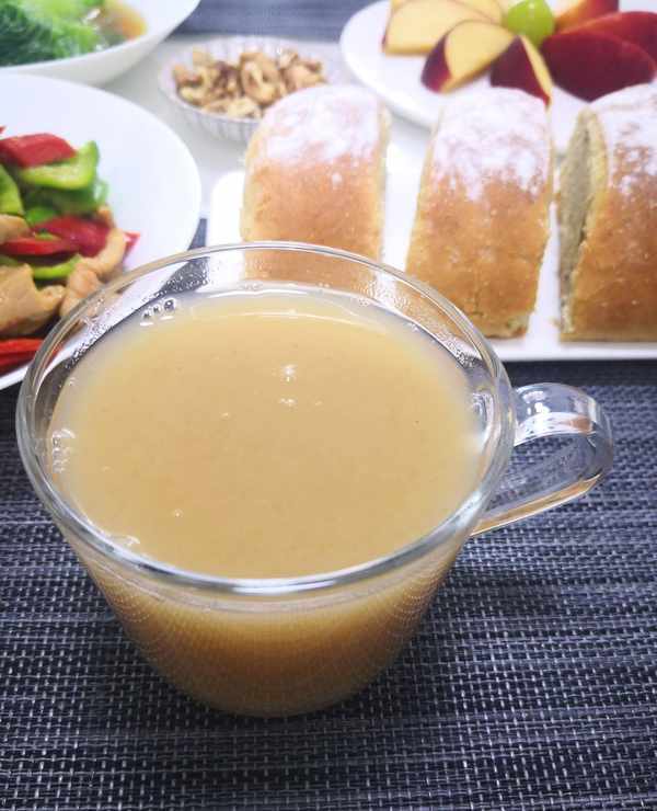 把所有食材倒進豆漿裡,加適量水,選擇五谷豆漿功能鍵即可。