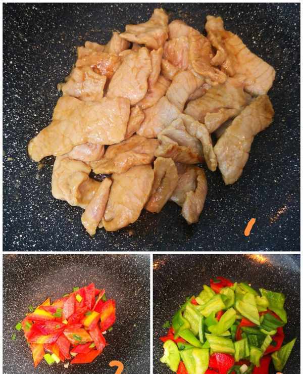 1.熱鍋涼油,倒入肉片,翻炒至肉變色,盛出備用。