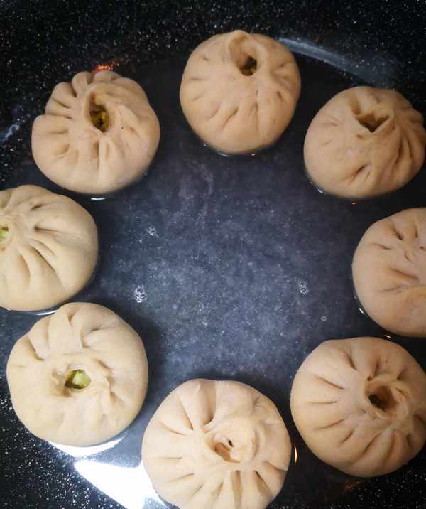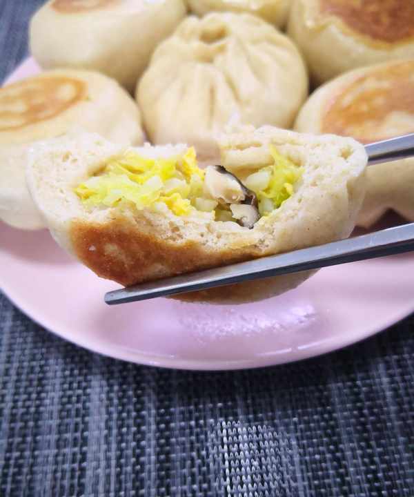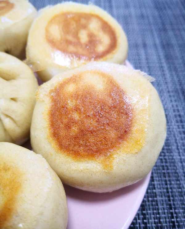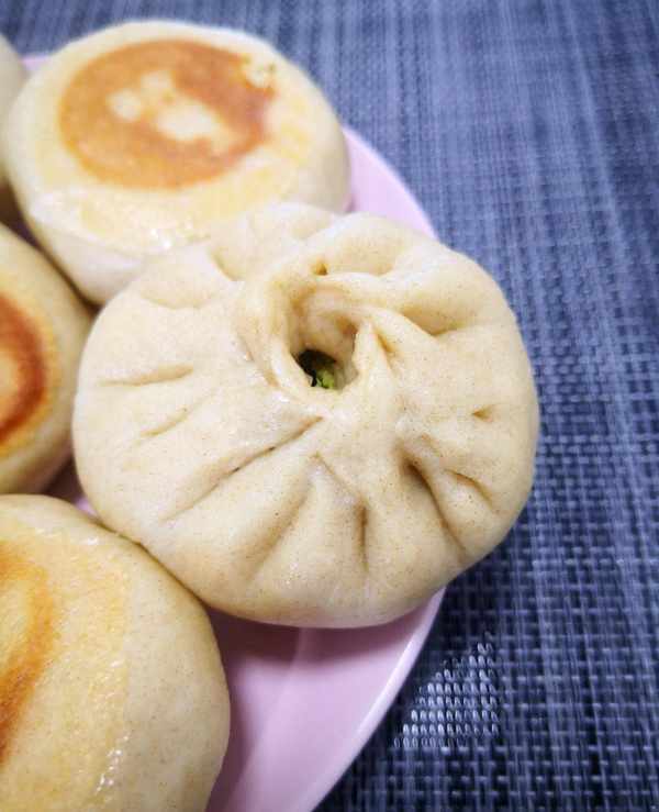 2.蒸包子更健康,如果像我這樣,偶爾采用煎的加工方式,一定要刷少油,讓底部微微起焦不發幹即可,少油更健康。