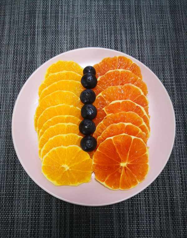 兩色橙子的甜度和香度都略有區別,搭配幾個藍莓,護眼、護視力。