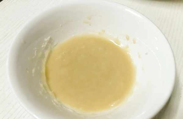 (5)提前做個油酥,碗中加一大勺面粉,放適量鹽,雞精調味,淋入一大勺熱油,攪勻油酥就做好瞭
