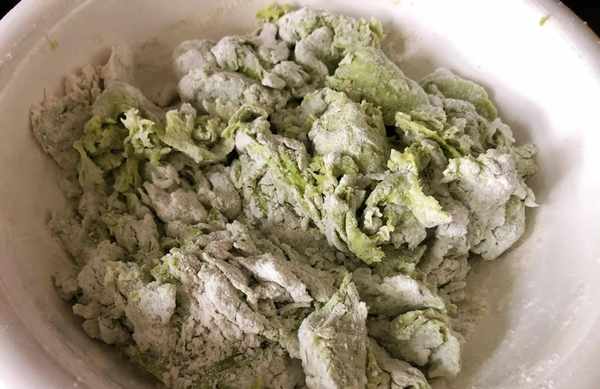 因豌豆泥含水量不同,因此面粉不固定,可以少量多次添加,最後可以成團就行