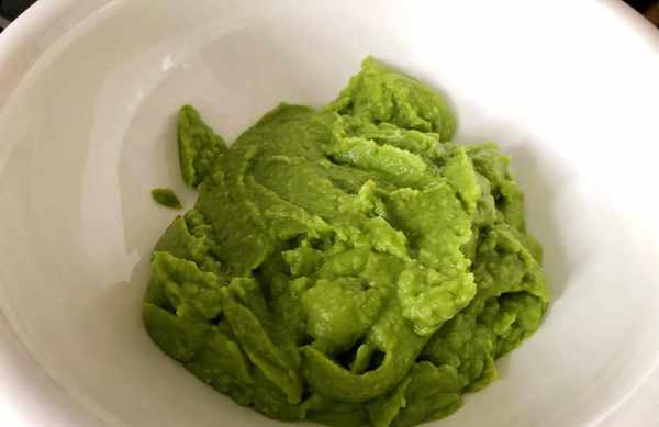 (2)倒進榨汁機,加入清水,水量沒過豌豆就可以,打成細膩的豌豆泥