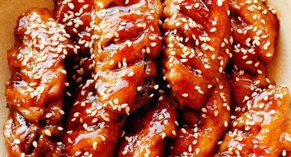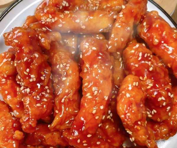 5、另起鍋倒入醬汁煮至冒泡,倒入肉條裹上醬汁撒上白芝麻即可。