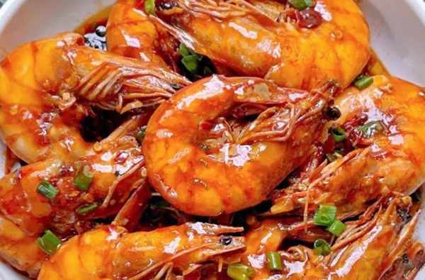 【食材】大蝦,蔥,薑,蒜,生抽,老抽,蠔油,番茄醬,料酒白糖,香醋