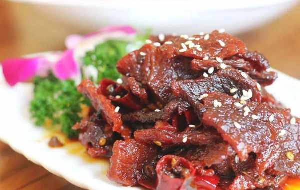 原料:牛腱子肉1000克、幹辣椒節250克、花椒50克、香料(白芷5克、八角2個、桂皮2克、香葉2克)