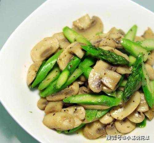 做法:1、口蘑切片,蘆筍斜刀切段,蒜切末;