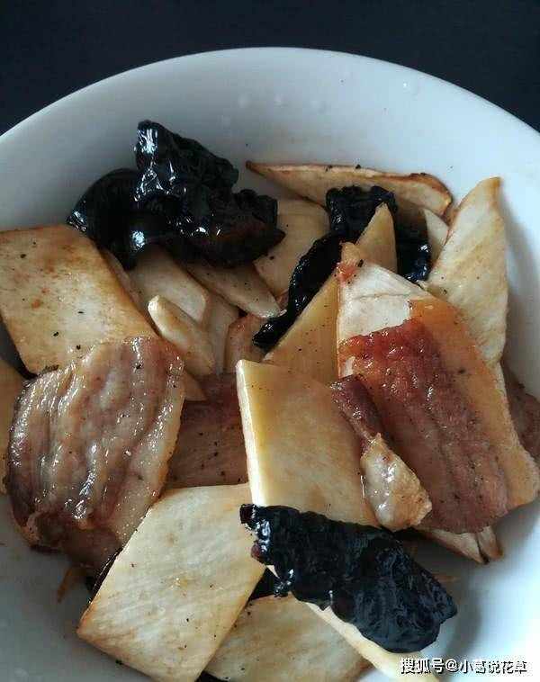 材料:帶皮五花肉、茭白、黑木耳、蔥段、薑片、蒜瓣、郫縣豆瓣醬、甜面醬少許、花椒粒少許、料酒、老抽、鹽、植物油