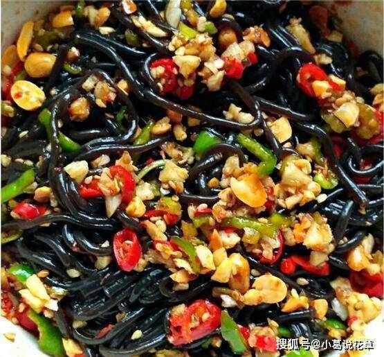 1.將蕨根粉放入開水鍋裡煮熟,煮6、7分鐘至沒有硬芯,撈出放入涼開水中過涼備用,煮蕨根粉的同時炸一點花生米備用;