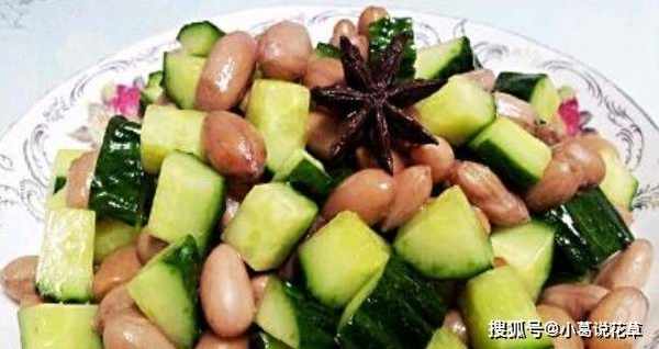 4.將花椒油倒入花生仁盤中,加黃瓜丁、鹽、醋、香油、味精,拌勻即可。