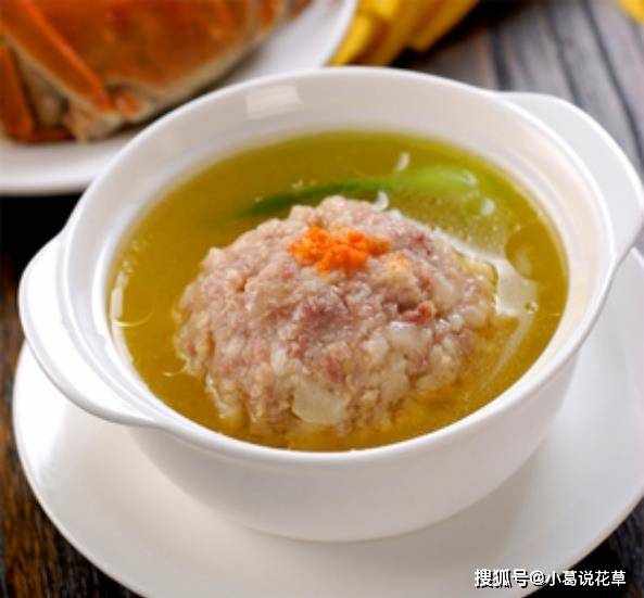 食材:五花肉、馬蹄、蟹黃、鹽、雞精、胡椒、薑、蒜、上湯