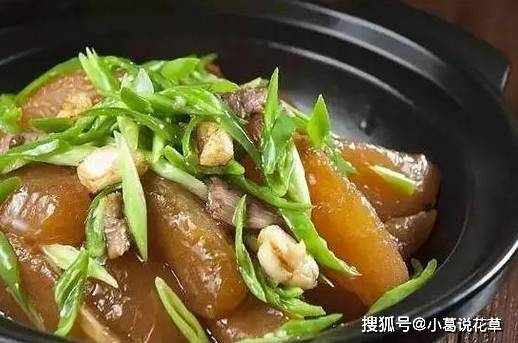 4、將蓮藕1000克,去皮,洗凈,拍扁,加入牛腩肉,配上一些青蒜,半件南乳同煲至好,吃起來,別具風味。