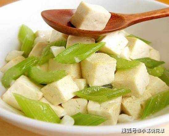 食材:北豆腐、芹菜、食鹽、蒜、香油、水淀粉、高湯